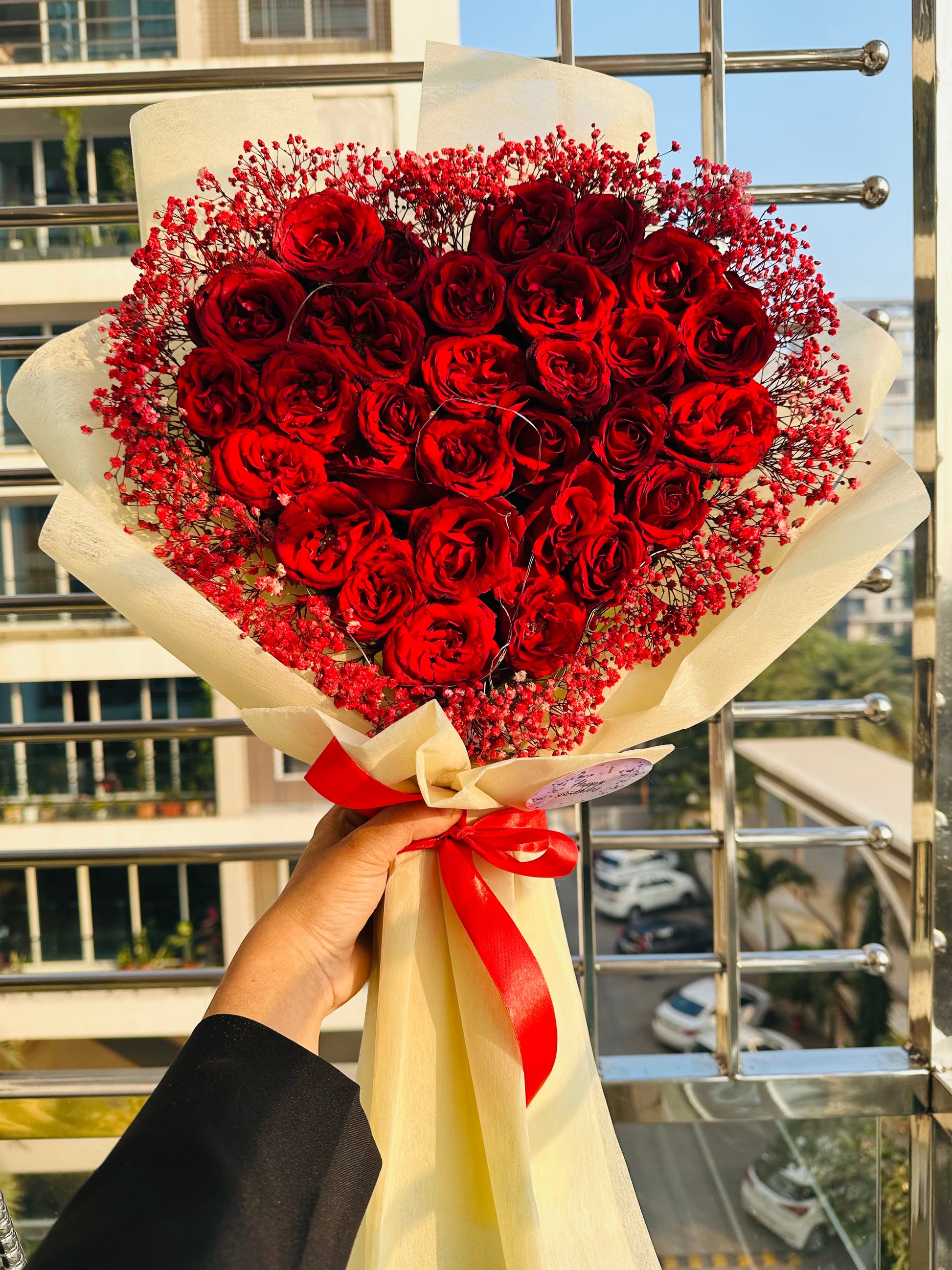 - Over 25 fresh red roses